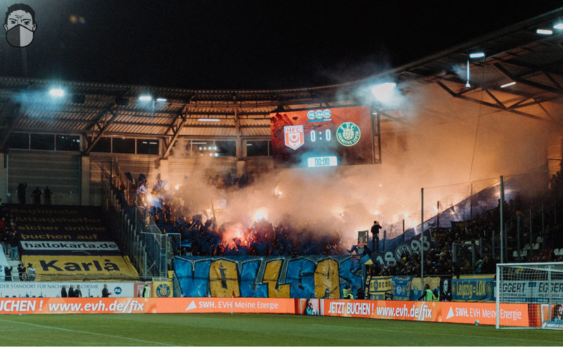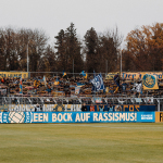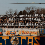Die letzten Spieltage verliefen sportlich absolut top, die unnötige und unglückliche Niederlage in Jena mal beiseitegeschoben steht unser Team völlig zurecht an der Spitze der Liga tief gefallener Ost-Mannschaften, konnte in Erfurt einigermaßen entspannt drei Punkte holen und sorgt weiterhin dafür, dass wir in unseren Träumen da im nächsten Jahr nicht wieder hinmüssen. Unerwünscht in der Steigerwaldkurve – nehmen wir so hin. Auf den Rängen waren die letzten Wochen wie immer bei viel Sonne auch viel Schatten. Zuhause passt der Schuh der größeren Kurve immer besser, auswärts mussten wir wie bekannt zuletzt mit der schmalen Kartenvergabe und sonstiger Schikane und repressiver Scheiße von Stadt & Bullen kämpfen. Hinzu kommen Leute, die es aus irgendwelchen Gründen geil finden, Böller in Richtung unserer eigenen Spieler & Medienteams zu werfen und uns damit immer wieder öffentlich lächerlich machen. Mehr dazu wie gewohnt im Spielbericht.