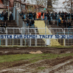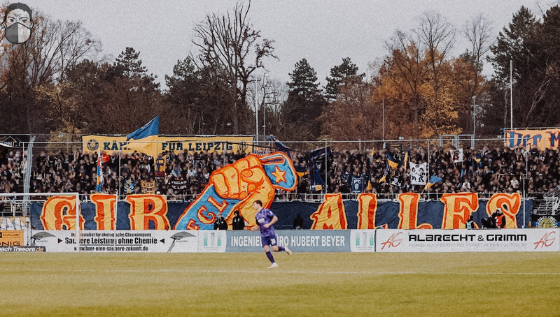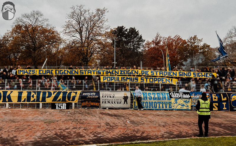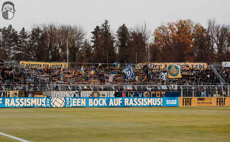 Letztes Wochenende noch mit wehenden Fahnen und Gesängen in der Leipziger Innenstadt, heute ohne Material und ohne Support in den Kurven. Wir werden die ersten 12 Spielminuten schweigend