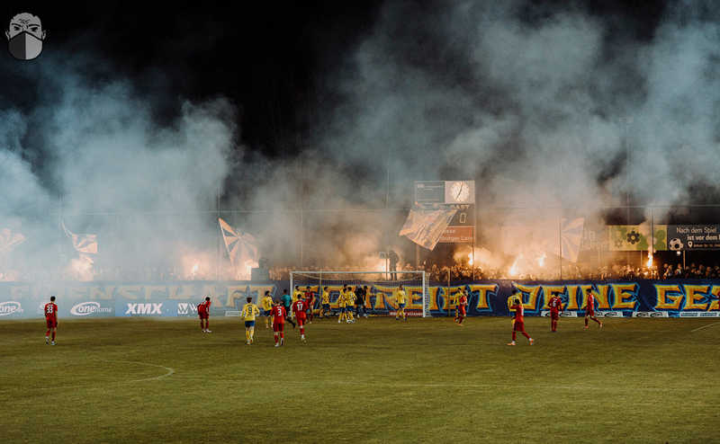 Vor paar Jahren hätte das Team wahrscheinlich maximal einen Punkt aus den Auftaktspielen mitgenommen, dank kontinuierlicher Arbeit sind die Leute auf dem Rasen aber mittlerweile schon so weit, dass selbst ein schmieriges 1:0 auch mal über die Zeit gezogen wird - egal wie das am Ende aussieht. Damit lässt sich arbeiten, das macht auch auf den Rängen mehr Sinn sich für diese Mannschaft unseres Vereins aufzuraffen. Auch in der Kurve finden sich Stück für Stück gewohnte Abläufe, hier und da isses noch etwas hakelig aber analog zur Leistung auf dem Rasen lässt sich damit leben und arbeiten.